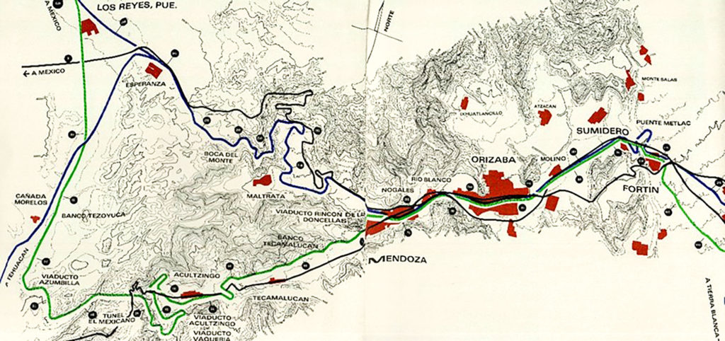 Desde el primer viaje, a lo largo de la vía del tren ya existían algunas estaciones, entre ellas, la estación de Boca del Monte, Puebla, a una distancia de 251 kilómetros, aproximadamente de la estación de Buenavista en la Ciudad de México. Curiosamente, la estación de Boca del Monte se encontraba ubicada a escasos metros de los límites del estado de Puebla con el estado de Veracruz, donde la meseta central termina y la pendiente deja de ser suave para entrar bruscamente a un terreno accidentado: ¡A las cumbres de Maltrata!, en donde los pasajeros podían disfrutar de un hermoso paisaje y, al mismo tiempo, sentir cómo su ritmo cardiaco se aceleraba por la aventura de enfrentarse a un precipicio, descender hasta el fondo del mismo a una velocidad totalmente desconocida. Para descender las fuertes pendientes de las cumbres se requería de una locomotora de vapor potente.