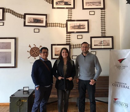Gabriela Zegarra (al centro) en el Museo del Ferrocarril de Tulancingo durante su visita a México en 2019. Fuente: Página web del Municipio de Tulancingo de Bravo en: http://2016-2020.tulancingo.gob.mx/eligen-a-tulancingo-para-el-proyecto-de-creacion-de-la-red-latinoamericana-de-museos-ferrocarrileros/